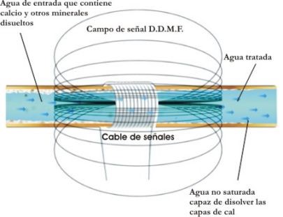 El principio de este tratamiento del agua no es nuevo, la primera patente se remonta al año 1900. Este equipo introduce esta idea en el siglo 21 con la aplicación de una técnica patentada. El aparato electrónico emite unas señales de frecuencia modulada que cristaliza los minerales disueltos, como el calcio y el magnesio en el agua antes de que se depositen (calcifiquen) en la pared de la tubería de agua, bañera, mampara, termos, calderas, lavavajillas, lavadora, etc.
