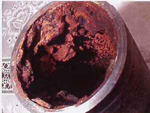 El moho es común en tuberías de hierro. El moho desaparece en dos o tres semanas y lo reemplaza una capa aislante negra que protege la tubería de hierro (magnetita). Esta capa es muy delgada, no crecerá con el tiempo y tiene muy buenas propiedades de transferencia de calor.